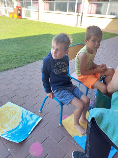 eindelijk was het zover en mochten ze met de voeten in de verf!